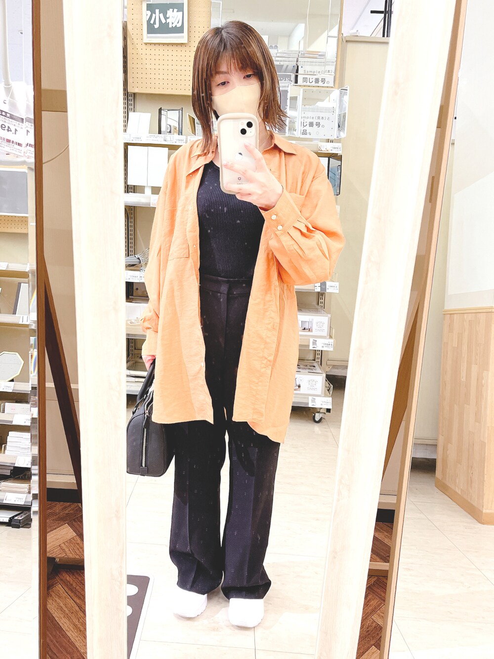 今日から3連休。 お店にあった全身鏡でぱしゃり 汚かった笑 UNIQLOのフレアパンツ履きやすい GLOBAL WORKのシアーシャツも可愛い♡