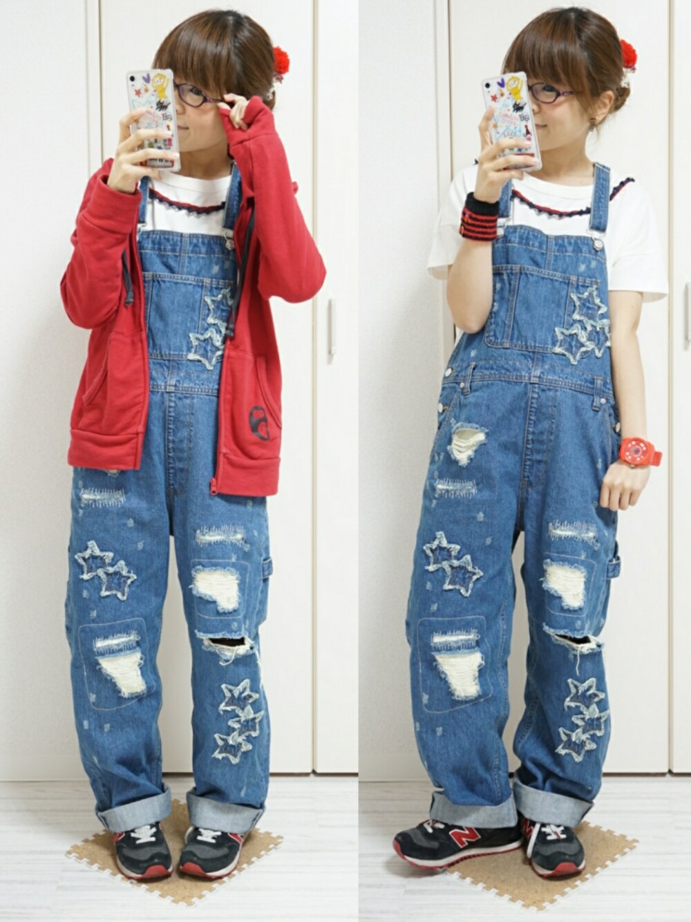 めがねっ子参上👓✨ 実は左右の視力の差が激しすぎてPC作業や編み物、読書の時などはメガネかけてます💡右目近視+乱視、左目遠視+乱視と盛りだくさんです👀(笑)仕事をし始めるまでそこまで悪化してることに気づきませんでした😂仕事用にこのメガネをもってるけどお家用に一個メガネ欲しい……そして片目だけのコンタクトも欲しい……😅 …………どーでもいい情報でしたねww😂 さて今日のコーデは新作です💡 WWLのオーバーオールはずっと欲しくてどこまで値下げしていただけるか待ってたやつ👖星のダメージが可愛くって💓そしてPOUDOUDOUのトップスはこないだみはるちゃんとお出かけした時に出会ったもので、セールで半額になってて購入💡後ろのドットの刺繍も可愛いです💕 最近お仕事が忙しいのですが明日は束の間の休息日✨お天気が悪いのが残念だけど、お掃除やら編み物やら自宅で引きこもり活動しようと思います😏🎶