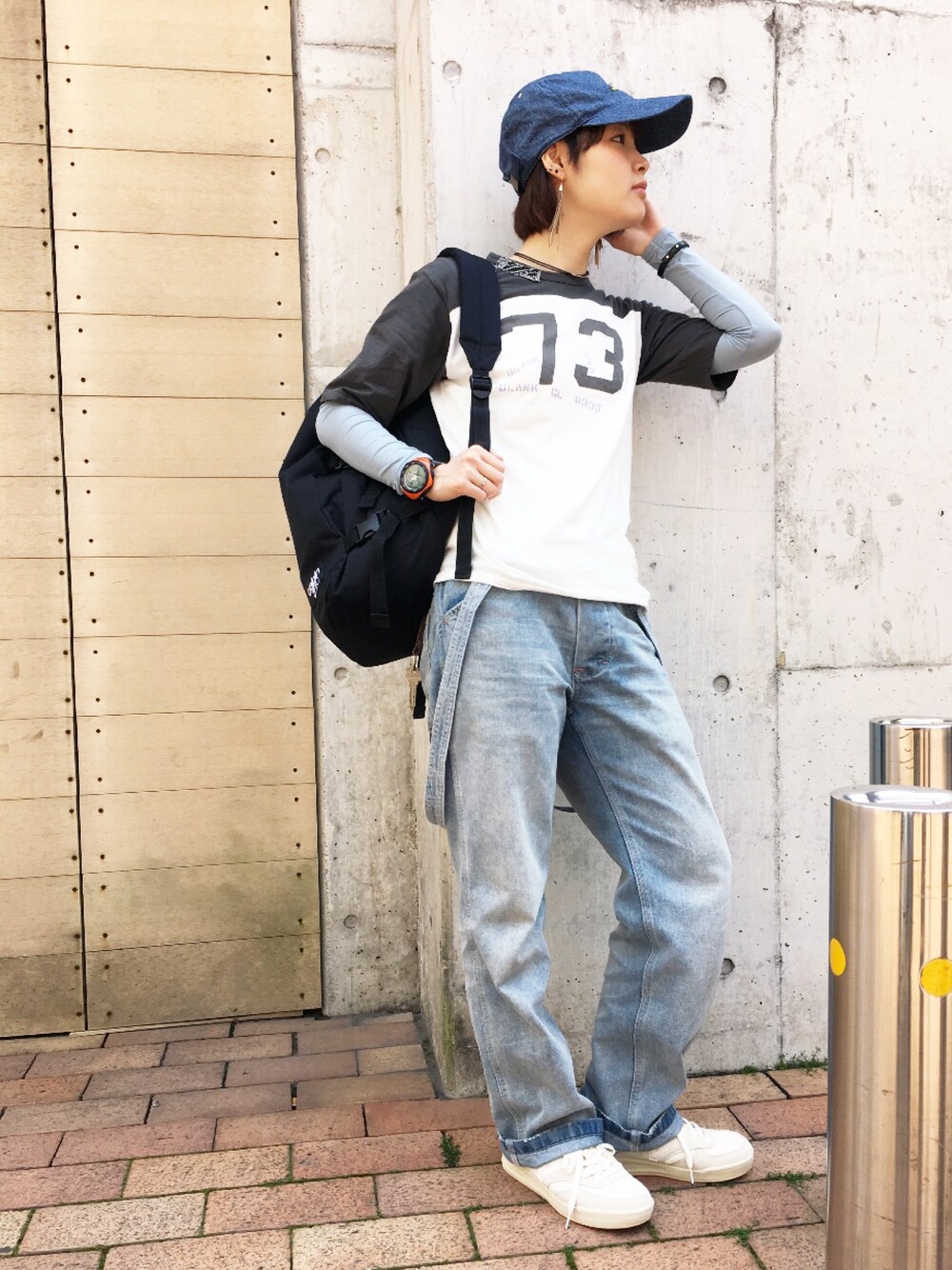 自分にすっごくしっくりくるコーデです☆笑 今年も出ましたね! ナンバリングTシャツ!! 大好きな五分袖です☆ 丈も絶妙で、少し長いですがスカートや大きめのボトムとも合わせられるぐらいで使い回しが効きますよ〜♪ 久しぶりのとことんボーイッシュでテンション上がりました☆