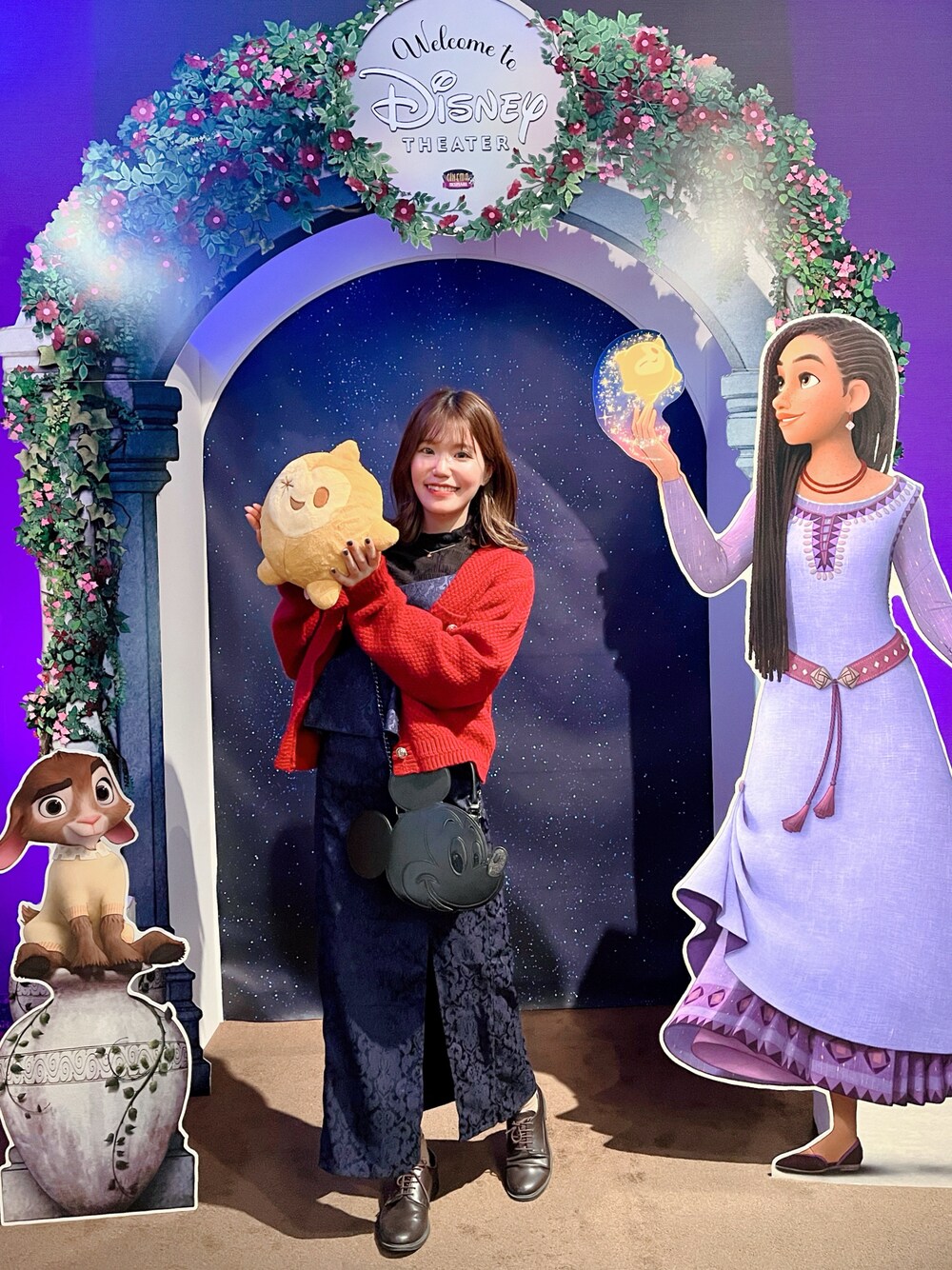 舞浜でウィッシュを観た時のコーデ🌟 スターちゃんの先輩になりたくて弟子くんコーデ🧹 きれいめワンピと赤の分量減らしてちょっと大人な弟子くんイメージ🪄︎︎ 映画館スターちゃんまみれで可愛かった〜