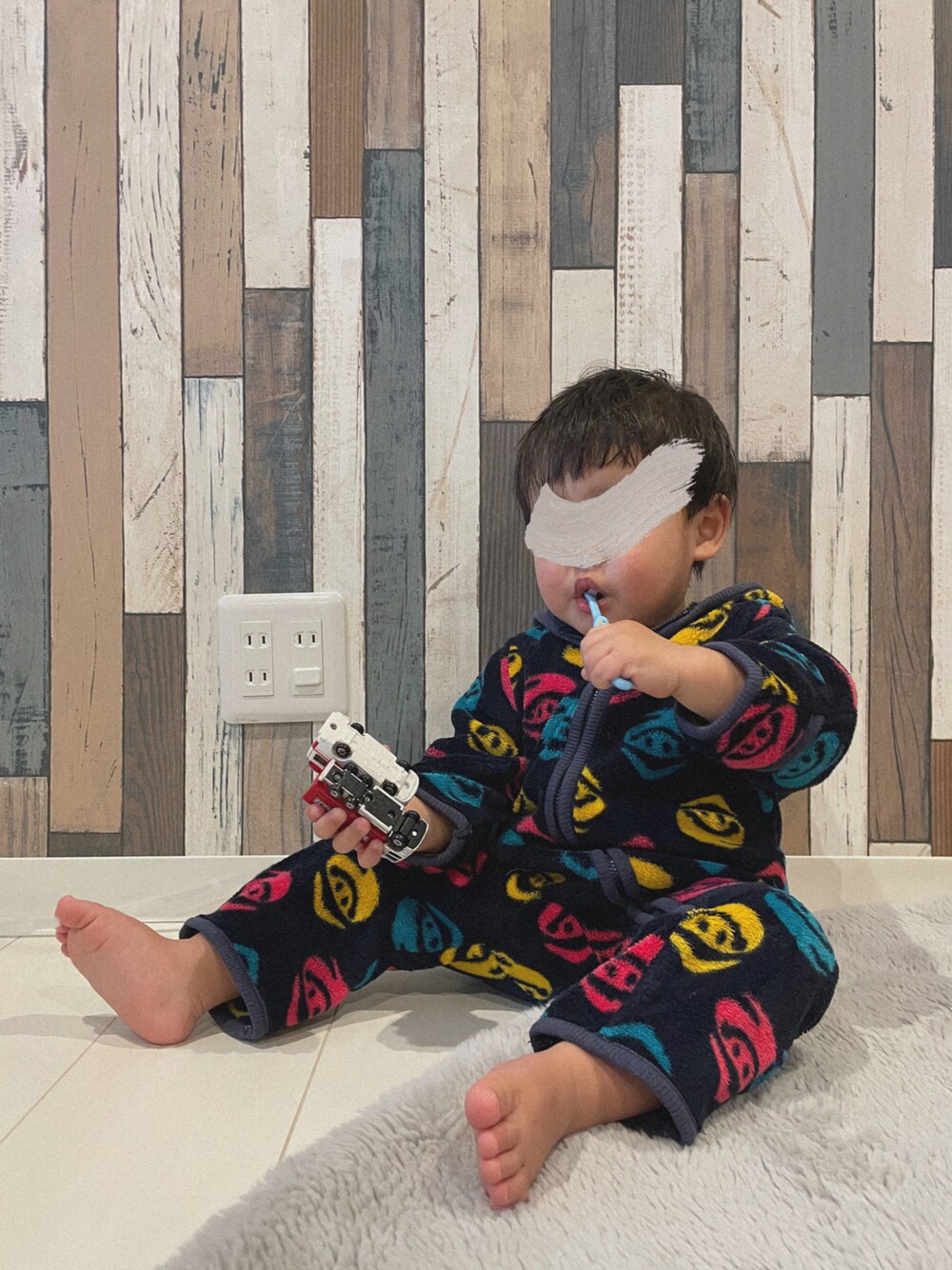 トミカ2台持ちで歯磨き🦷🪥