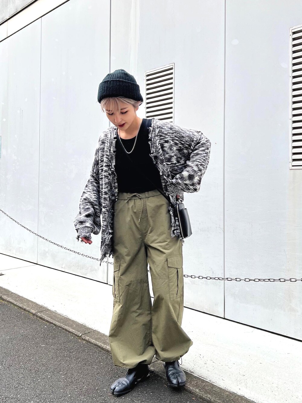 MADOKA_NAGAKURAのカーディガン/ボレロ「WEGO/ダメージミックスカラービッグカーディガン」を使ったコーディネート