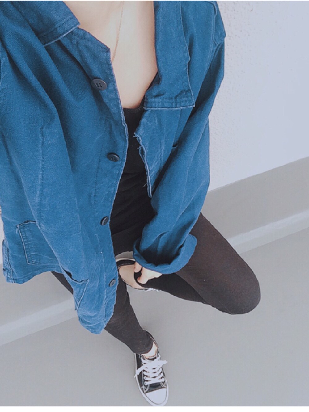 この青のデニムシャツがスピンズで 500円だった😦💙💙 即買い🙌💙 最近暖かいから最高〜🌸🌸 はぁ〜歯医者行かないとなーん😐😐 インスタにもcodeポストしているので 見てくださーーい😽💕 →dododokin