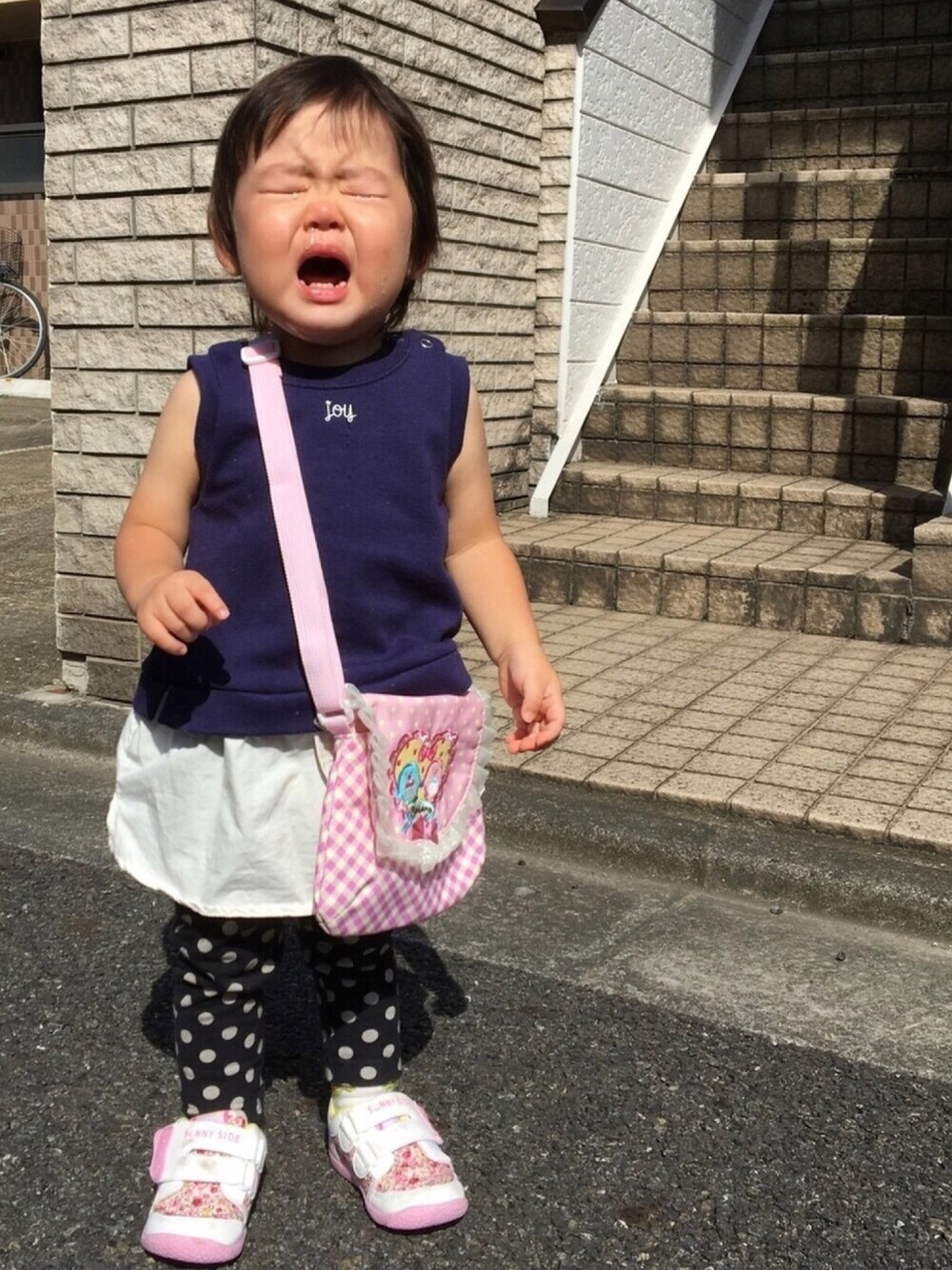 お外行きたいって言うからお外に来たら いやだいやだと大泣きの巻💦 イヤイヤちゃん。疲れる… イヤイヤに毎回付き合わないといけないのかしら。 🍎今月の身長体重 身長80.0センチ 体重9.5キロ でした♪ やっと80センチに到達٩( 'ω' )و 体重は病みあがりだからまた減ってた💦 早く10キロになれー!! 💙今日のたっくん 前回のと二枚組だった西松屋ロンパース♪