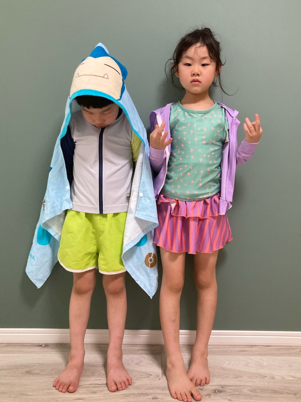 こんにちは👙🌞あかねくん&たっくんです 日曜日は今年初プールに行ってきました。 屋根のある温水プールだけど、混んでた❗️ ひさびさのプールはたのしかったね✌️ カビゴンのタオル、アイテム登録できないな、ピカチュウのほうはできるのに🙃