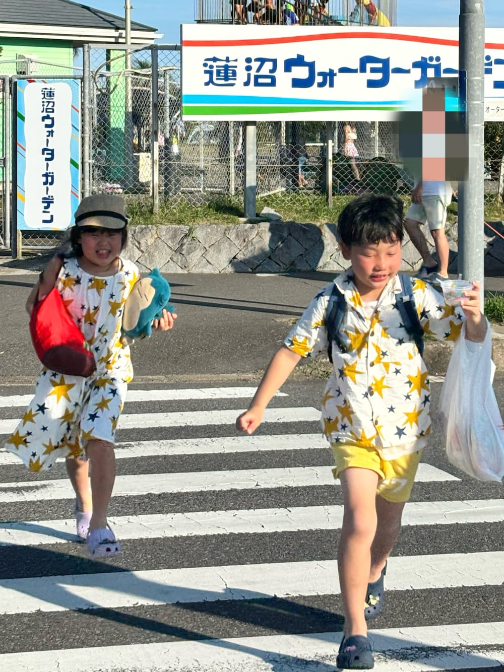 こんにちは✳︎⭐️あかねくん&たっくんです 正解はココでしたー 広すぎてたのしいプールです。 星柄のワンピとシャツ、夏らしくて良い。
