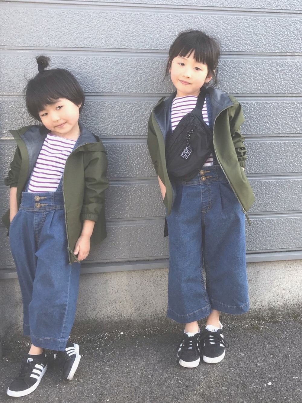 mee**naaのスニーカー「キッズ adidas アディダス 17-21GAZELLE C BB2507 BLK/WHT/GLD」を使ったコーディネート