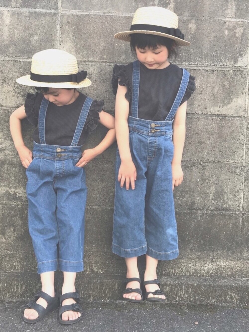 mee**naaのその他パンツ「【キッズ】サスツキデニムワイドパンツ/817450」を使ったコーディネート