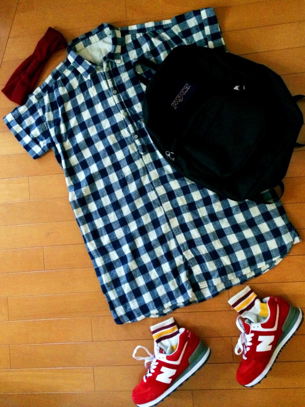 ワンピースの色が青系なので、 ヘアバンドとスニーカーは 赤にしてみました。 好きな色の組み合わせです。 もうすこし暑くなったら これを着ておでかけしたいです。