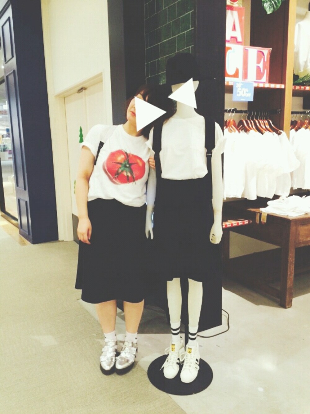 レイクタウンで遊んだ時にマネキンさんと双子みたいになったから友達に撮ってもらった( 笑 ) 記念にupします( ´﹀` )ふふ マネキンさん顔なしだけどお揃いで隠すw