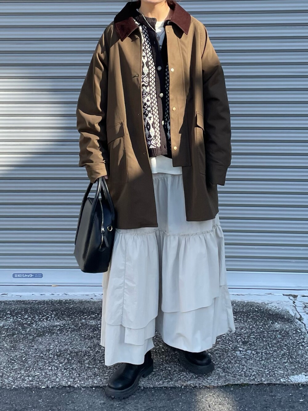 machikoのその他アウター「ラグランスリーブ 襟コーデュロイ オーバーハンティングジャケット」を使ったコーディネート
