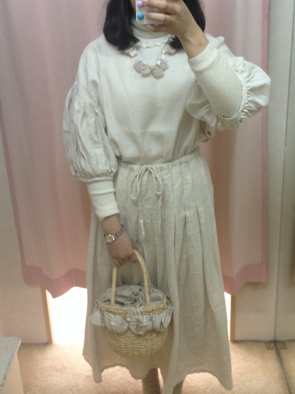 ブラウス…ハンドメイド タートルネック…UNIQLO スカート…studio clip カゴバッグ…TK shop ネックレス…drug stores リネンでまとめました。