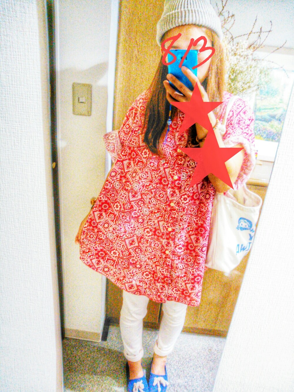 手が黒く、編集されてしまったので★(笑) デカシャツ 古着 ニット帽 PLAZA バッグ ハッピーハレイワ スキニー forever21 靴 もらいもの