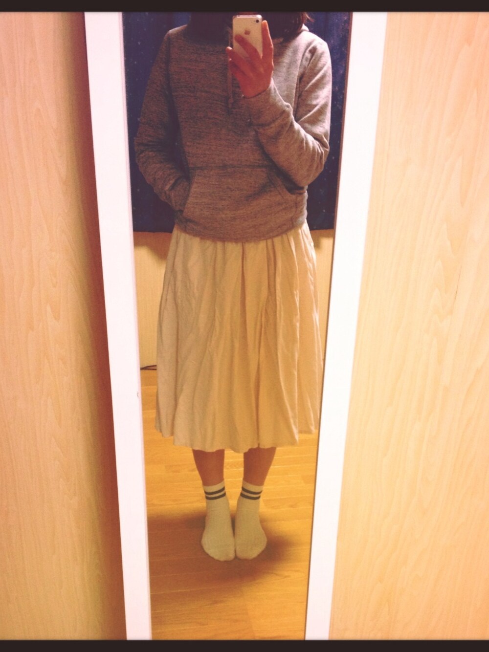自分的にはちょっとそこまで、じゃなくても大丈夫なコーデです。笑 ロングスカートはくと、ゆるーくなりますね*