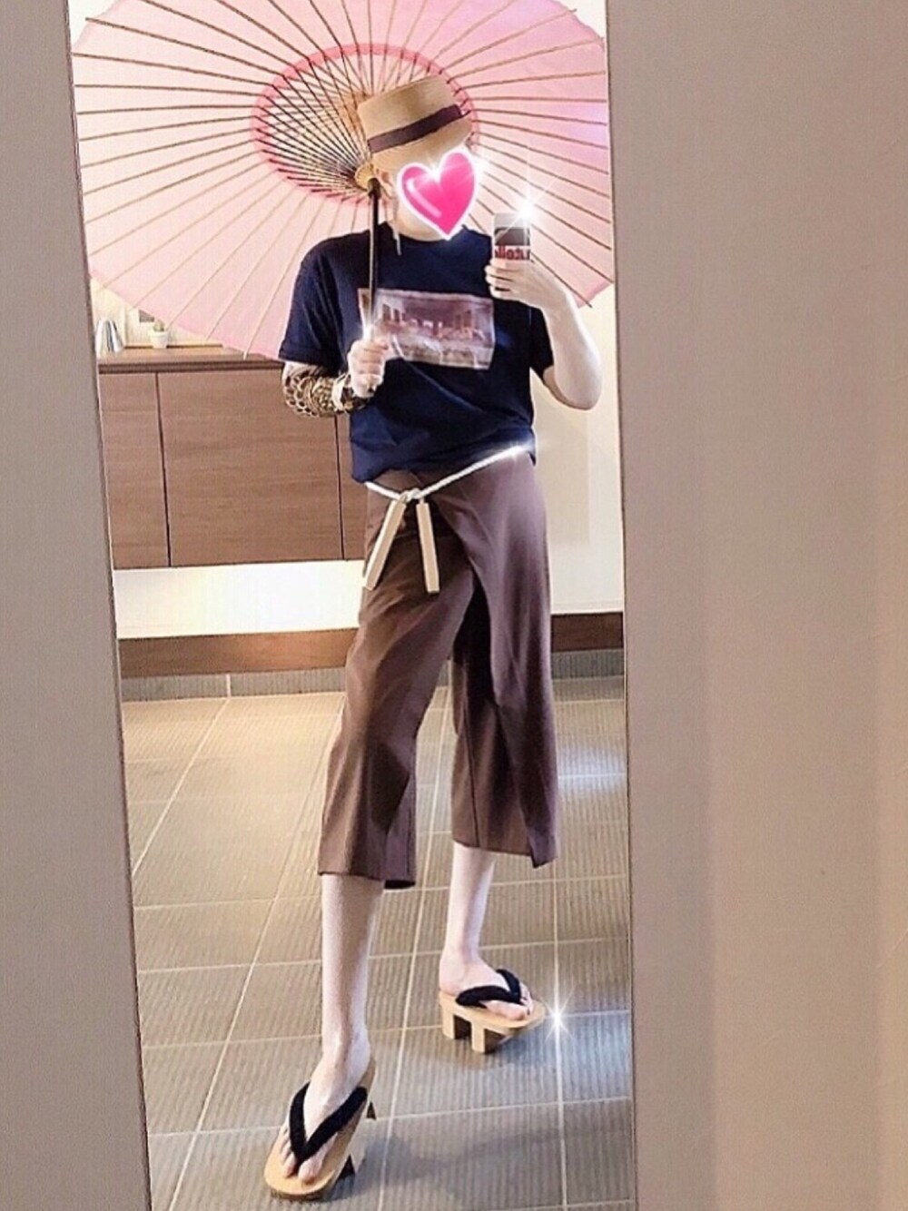 テーマ、ちょっとそこまでのコンビニコーデ🙋‍♂️ 最後の晩餐Tシャツをラフな和テイストで着てみました😙 なんか普通すぎたので和傘プラスしました(笑)🙆‍♂️
