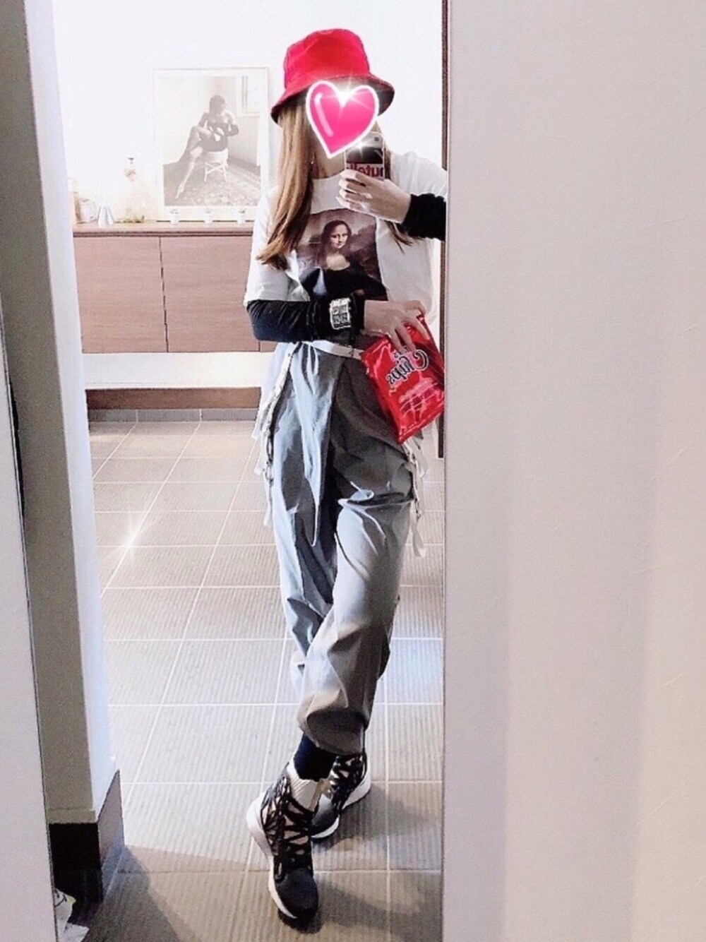 テーマ、カジュアルコーデ🙋♂️ 変わったデザインのハイカットスニーカーがポイントです♬🙆♂️(小窓参照)