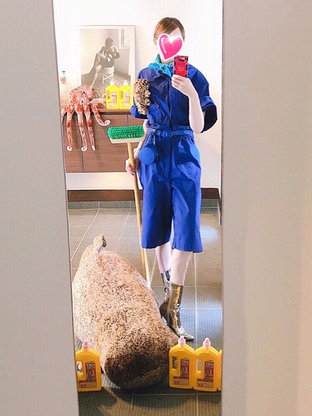 致し方なく課金のペットグッズ「175cmとビッグサイズ♬下に19cmの小さな機長がいます👌(笑)」を使ったコーディネート