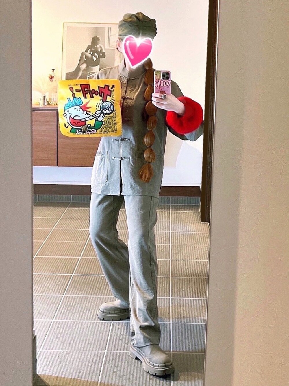 テーマ、ヤッター!めん🙋♀️✨(小窓参照) ウィッグを2個繋いで、ヤッター!めん髪型のロングバージョンにしたのがポイントです🙆♀️ あかりんがニーハイブーツの追いコーデしてくれたのが嬉しくて小窓に載せました♬🥰🙌