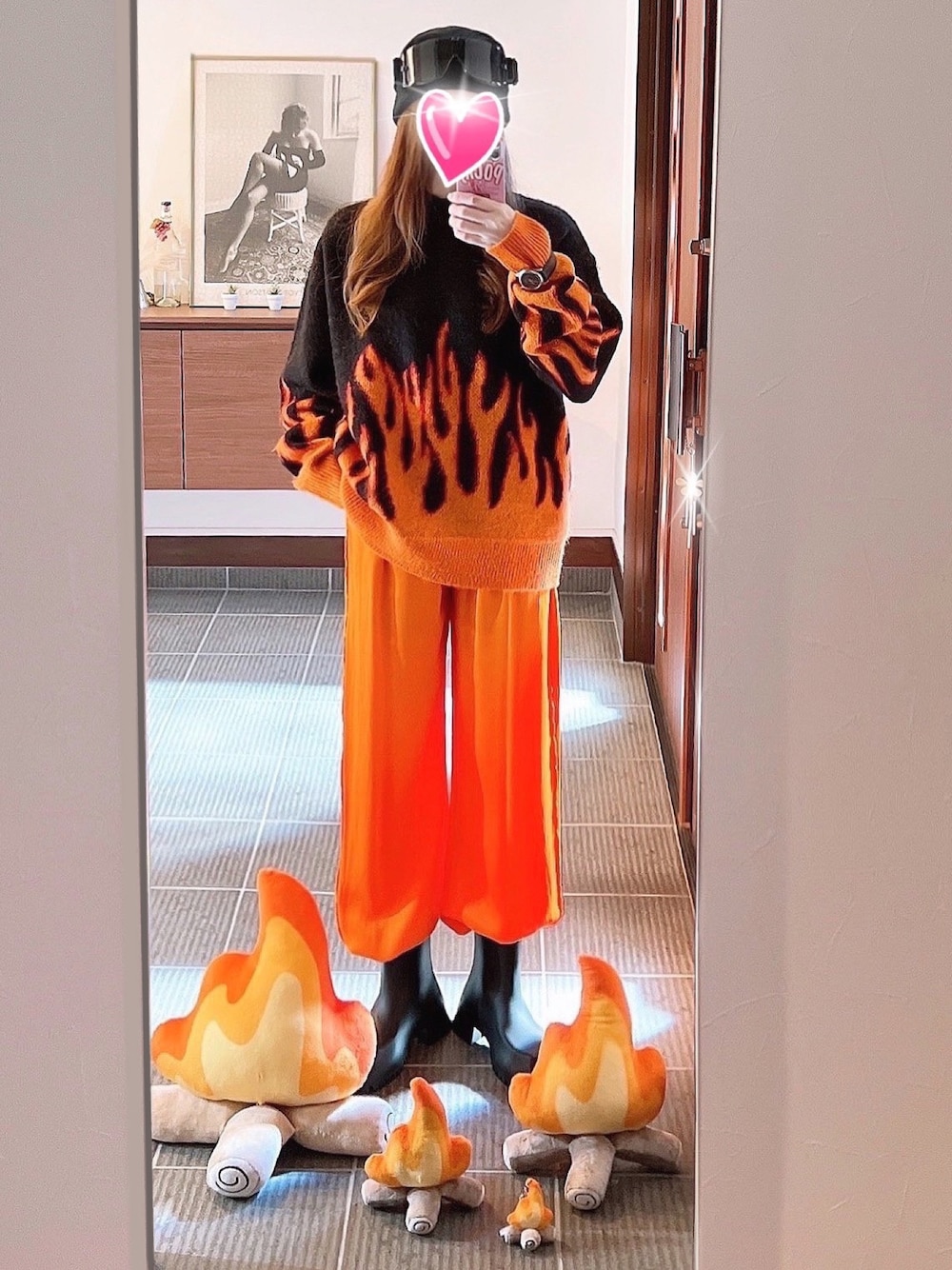 テーマ、あったかコーデ🔥🙋♀️ 玄関で暖を取りました♬🙆♀️