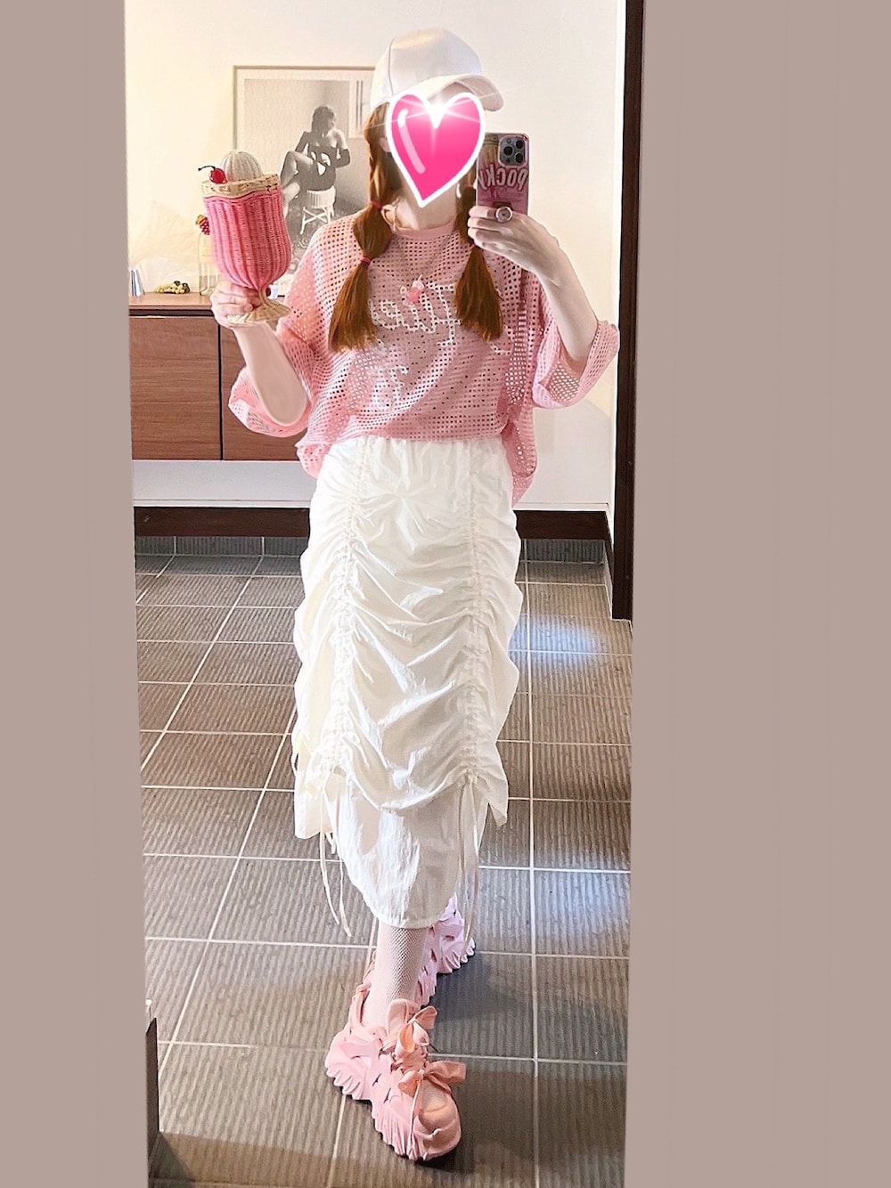 致し方なく課金のショルダーバッグ「ピンクのクリームソーダ♡かごバッグ」を使ったコーディネート