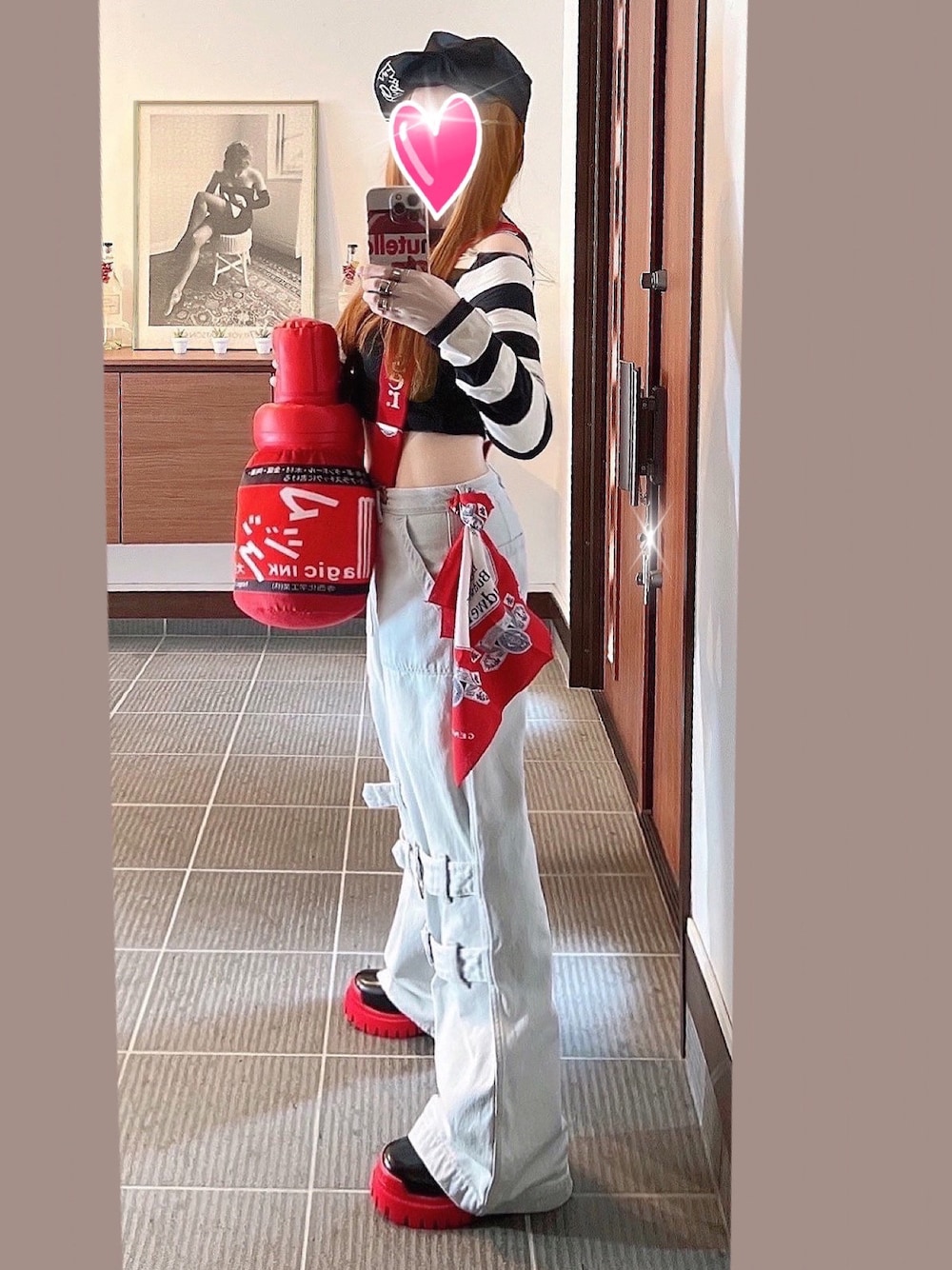 赤の大きなマジックインキとBudweiserのサスペンダーとバンダナがポイントです🙆‍♀️