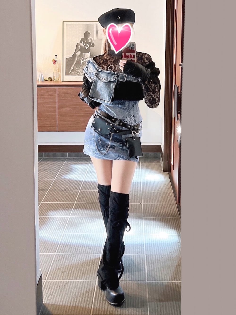 ストさんのタグを使いました🙌(ストさんありがとうです😆✨) ベルト3本使ってデニデニ×ブラックコーデにしました♬🙆♀️(小窓参照)