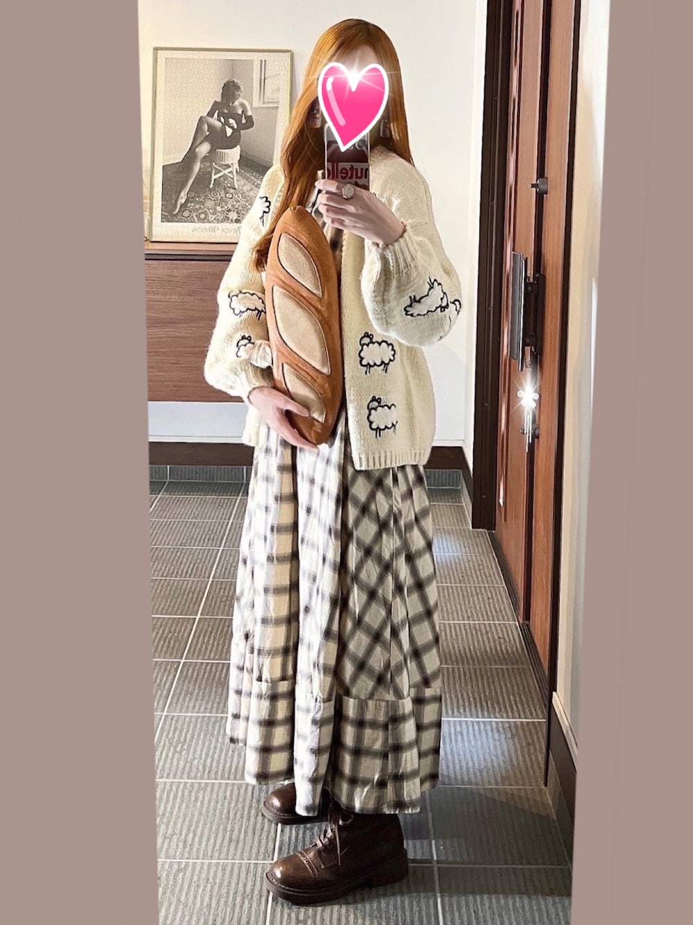 フランスパンバッグとピーナッツバターイヤリングがポイントです♬🙆♀️