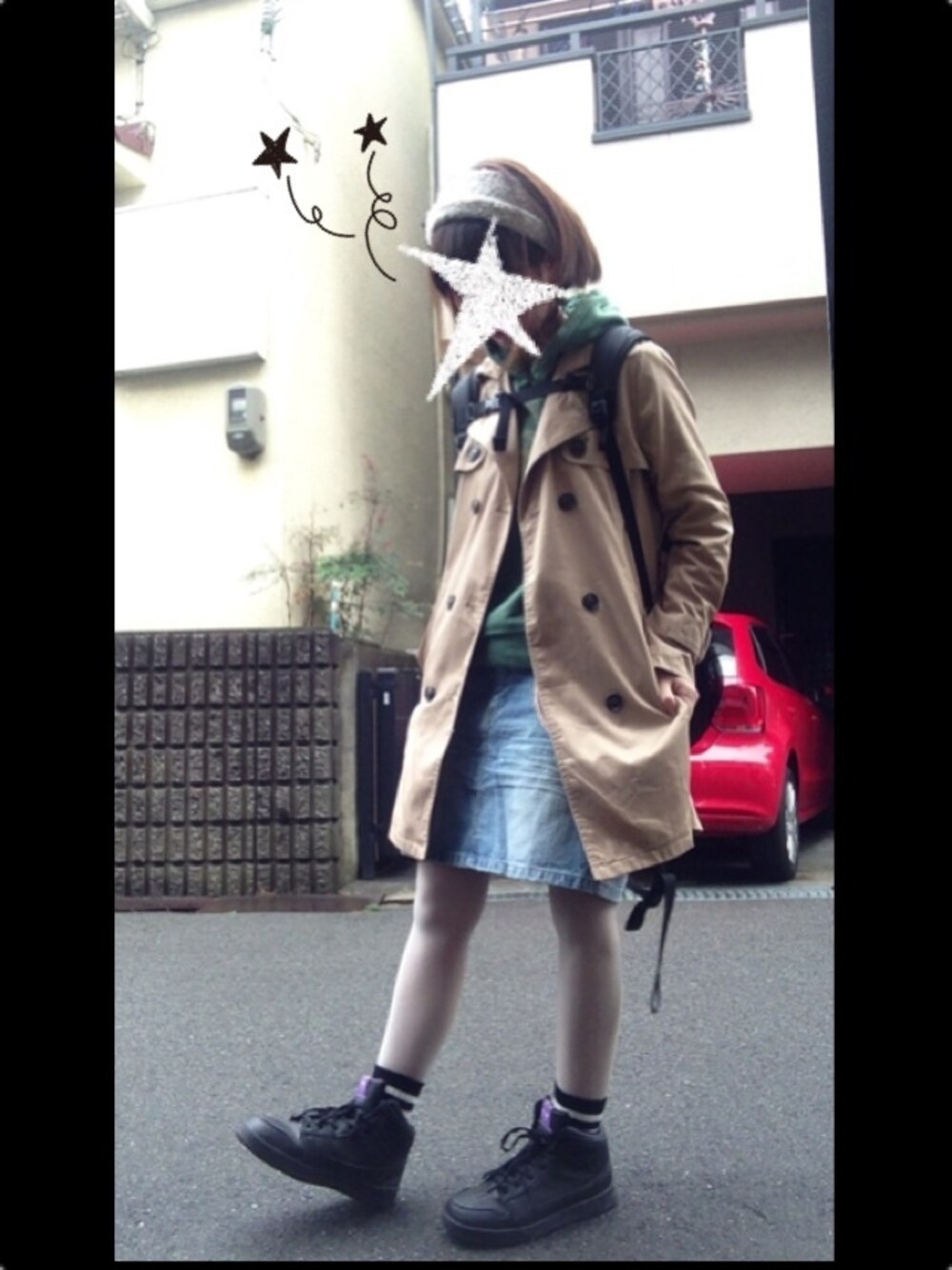 どんぐり娘。のトレンチコート「トレンチコート イーザッカマニアストアーズ」を使ったコーディネート