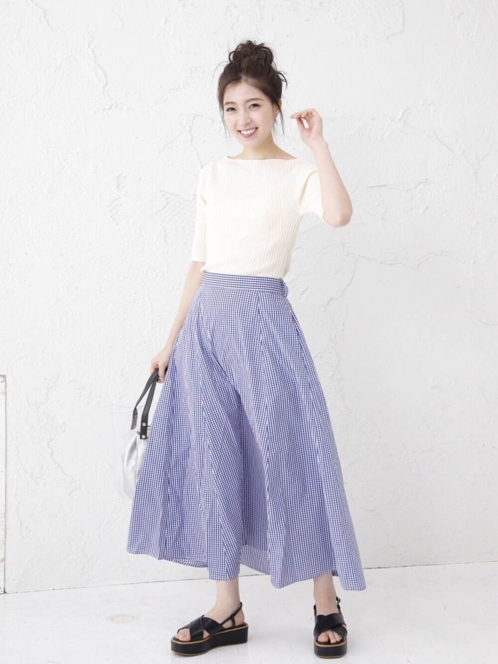 ☆リブライン5分袖プルオーバー ☆ギンガムチェックロングフレアスカート 5分袖なので季節も長く着用できる リブラインプルオーバー👌 スカートはピッチが小さめで 子供っぽくならならい ギンガムチェック🙆❣️