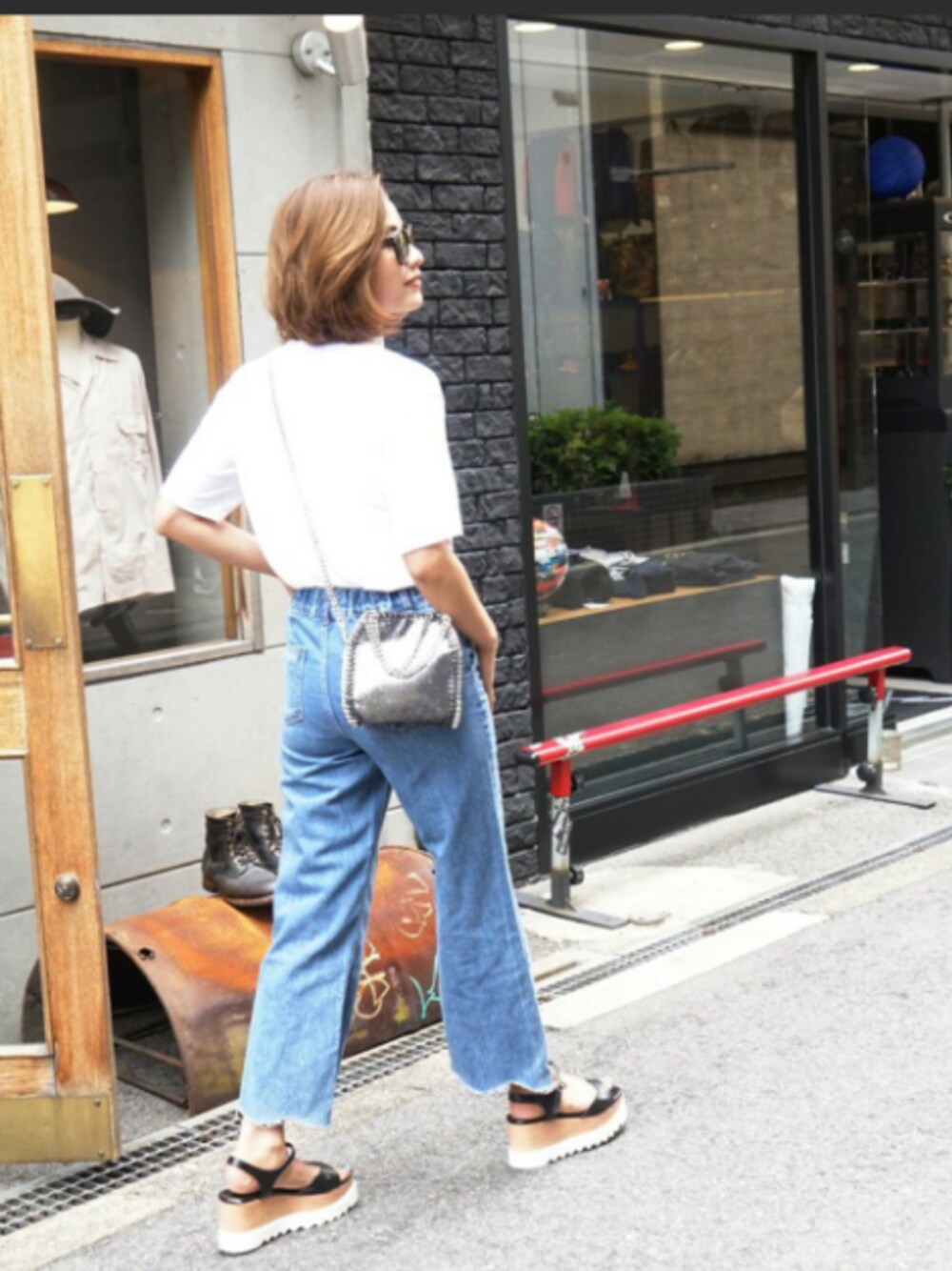 ⭐フォントロゴTシャツ ⭐スカラップカットオフデニムパンツ ⭐ミニチェーントリミング2wayバッグ ⭐アンクルストラップウェッジサンダル シンプルな栄作コーデを小物で盛りました💘💘 シルバーのバッグとウェッジサンダルで大人カジュアルコーデに💓