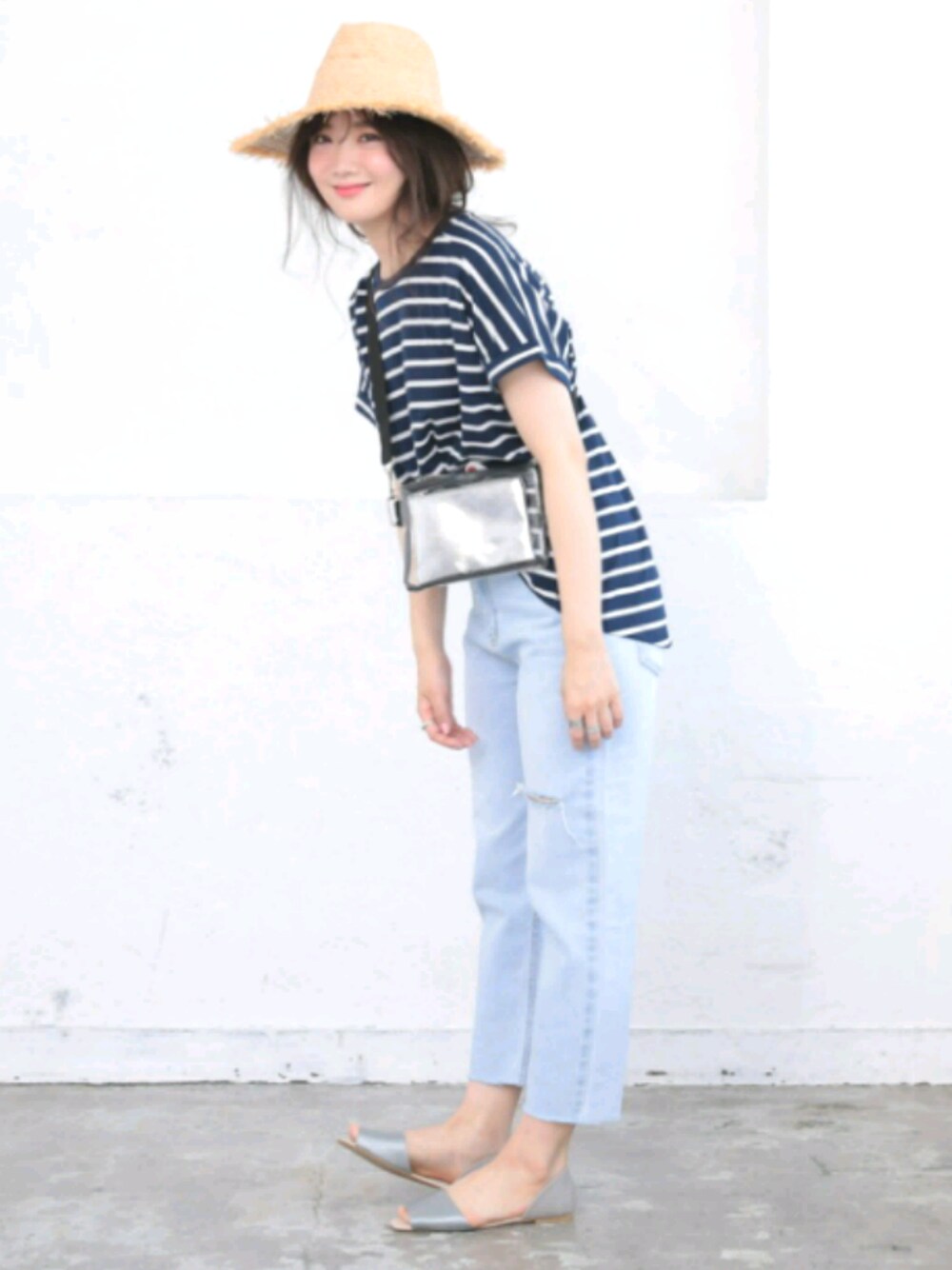 ⭐ラフィアフリンジワイドハット ⭐UV汗ジミ防止プルオーバー ⭐ポーチ付きクリアサコッシュ ⭐オープントゥフラットシューズ 汗ジミ防止でUVカット機能が付いた画期的なTシャツとクリアサコッシュでこのままフェスに行けちゃうコーデ🎵 BBQコーデにもオススメです💗