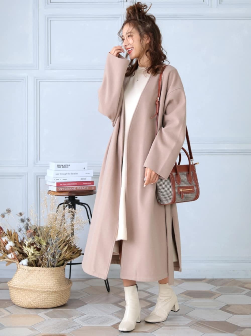 DONOBAN OFFICIALのその他アウター「ノーカラーダブルフェイスBIGコート [E]」を使ったコーディネート