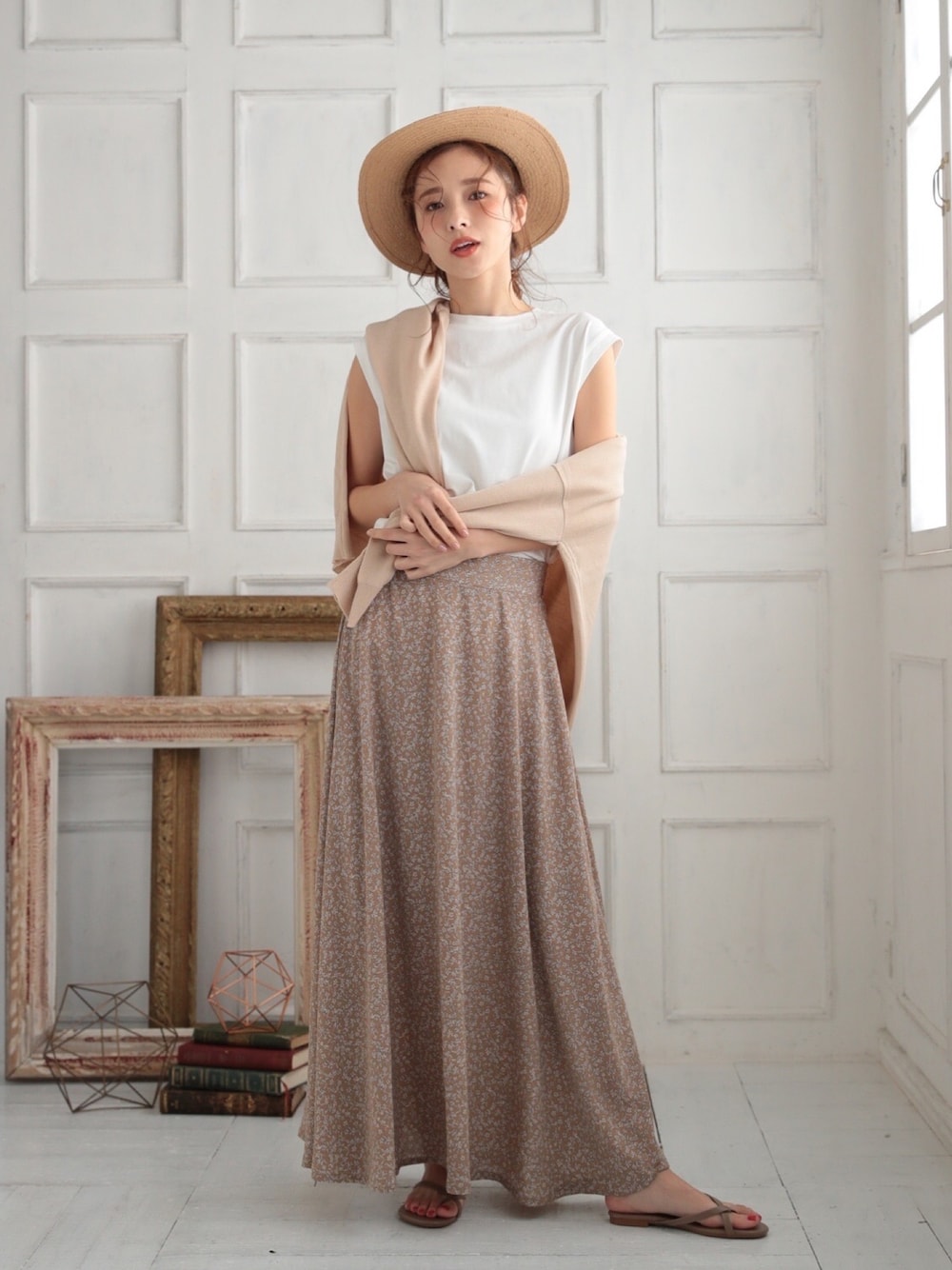 DONOBAN OFFICIALのスカート「小花柄セミフレアスカート」を使ったコーディネート