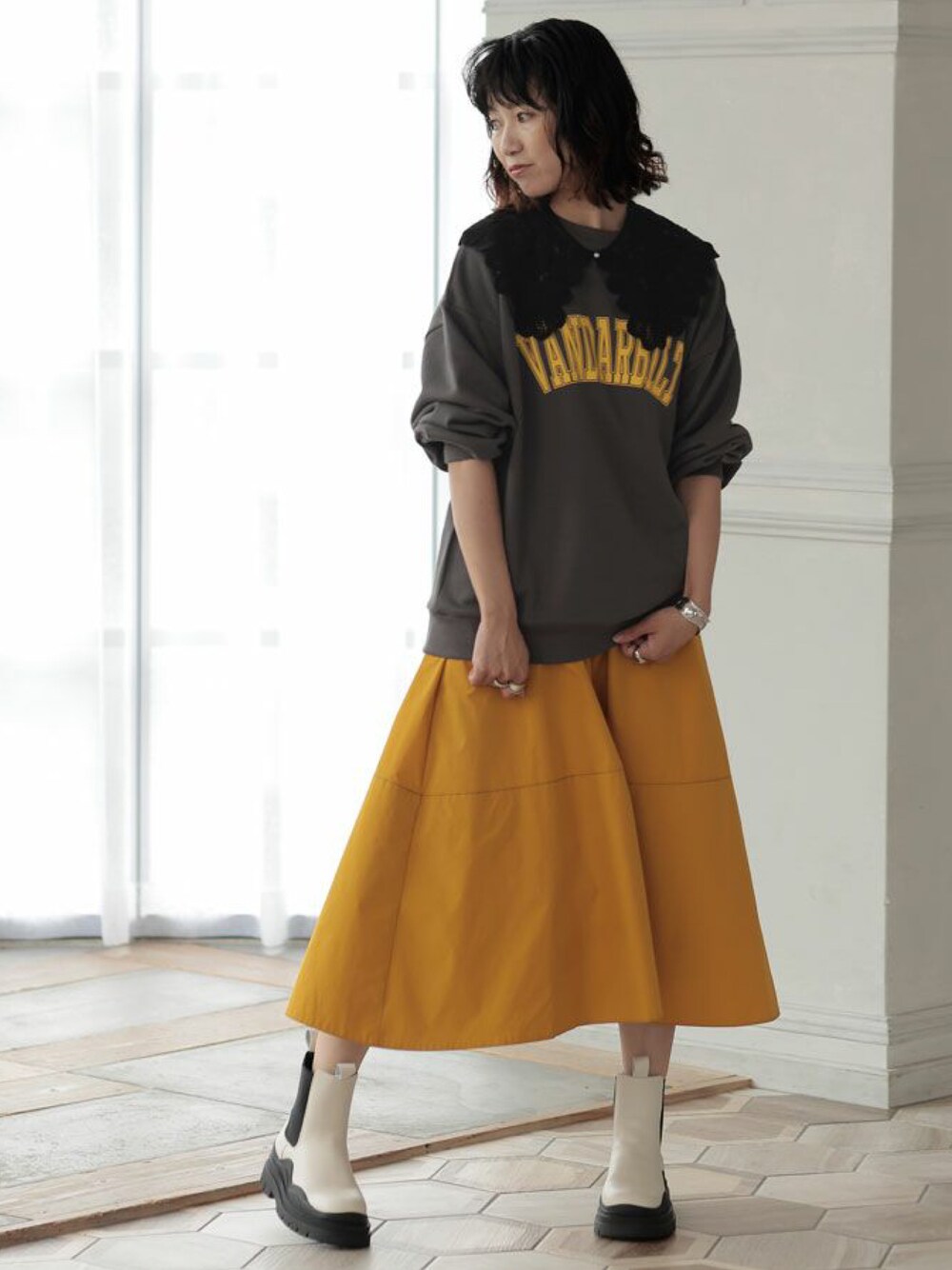 ヴィンテージライクなスウェットに、レースの付け襟で甘さをプラス🦄🖤
