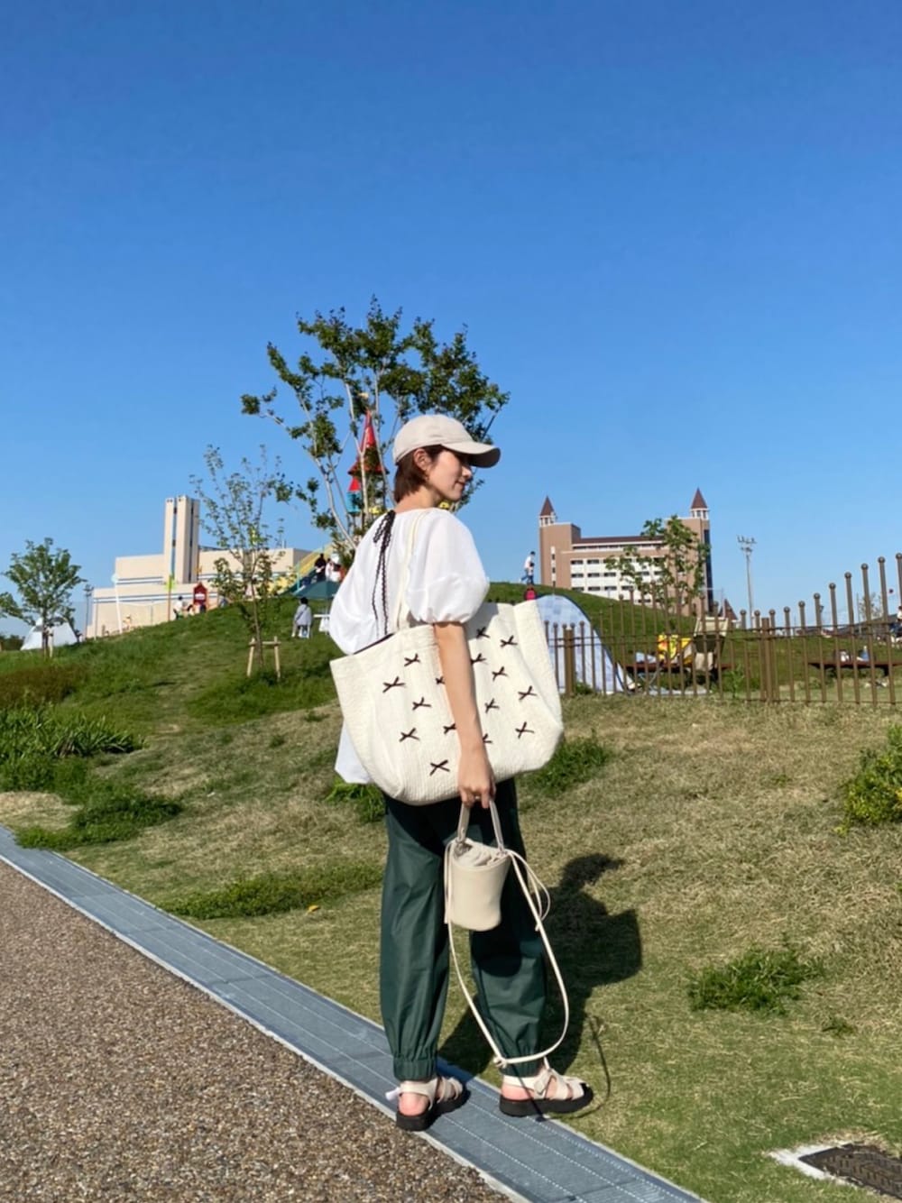 model:169cm/25cm 色違いしたお気に入りのランタンブラウス♡ シワにもなりにくく デイリー使いにも◎ バックリボンのなみなみラインがポイント!