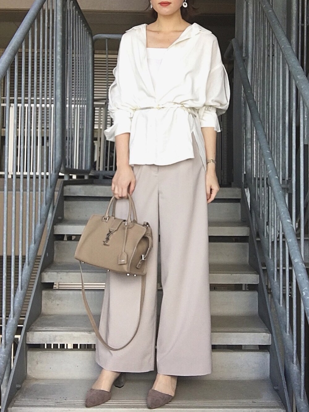 socollaのシャツは、袖口にベルトがついてるので 絞って着ると良い感じ❤︎"