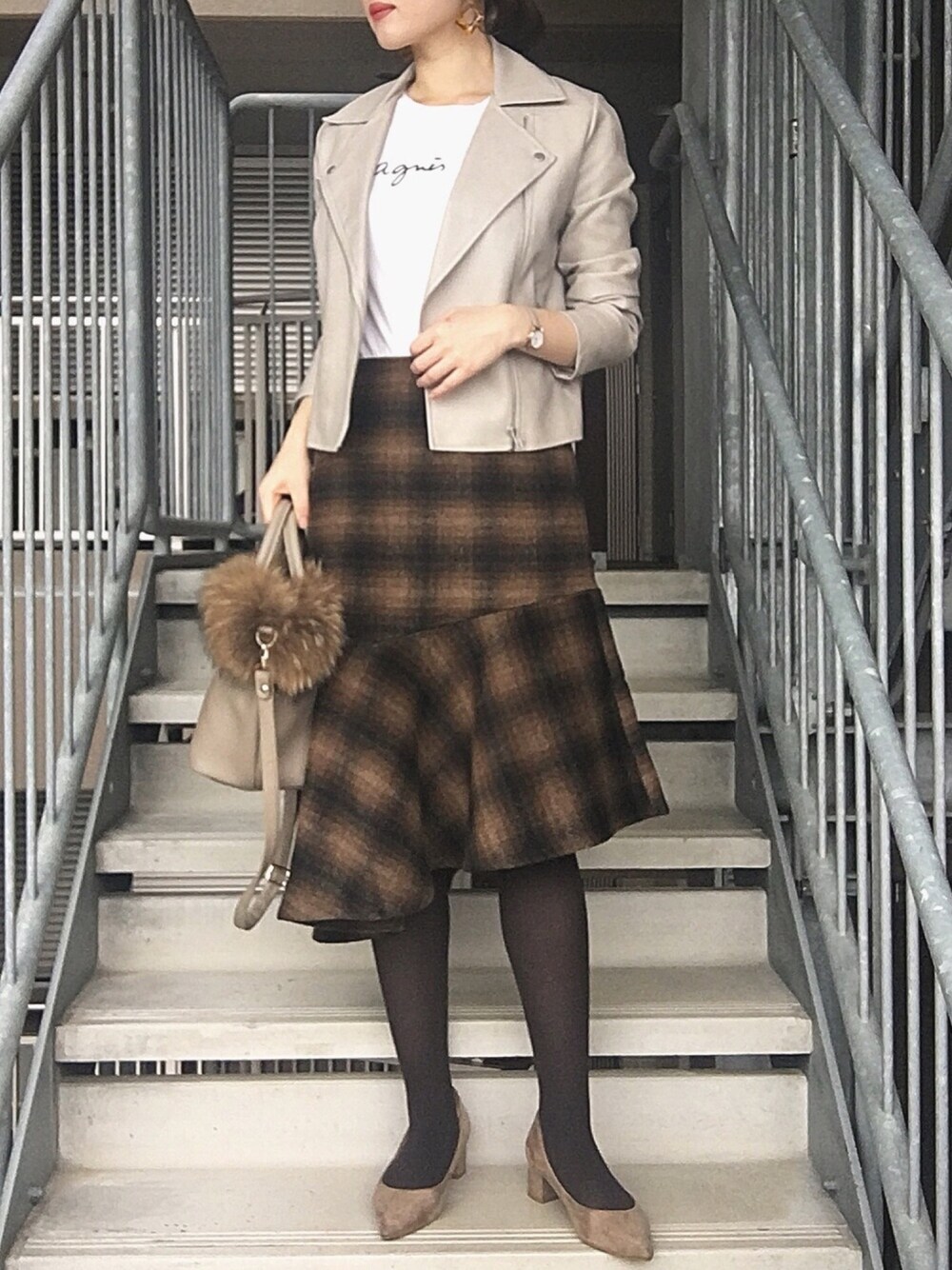 休日コーデ☕️ ご覧いただきありがとうございます🙋🏼♀️ 一目惚れしたGUのマーメイドスカートに、 ベージュのライダースを羽織りました。