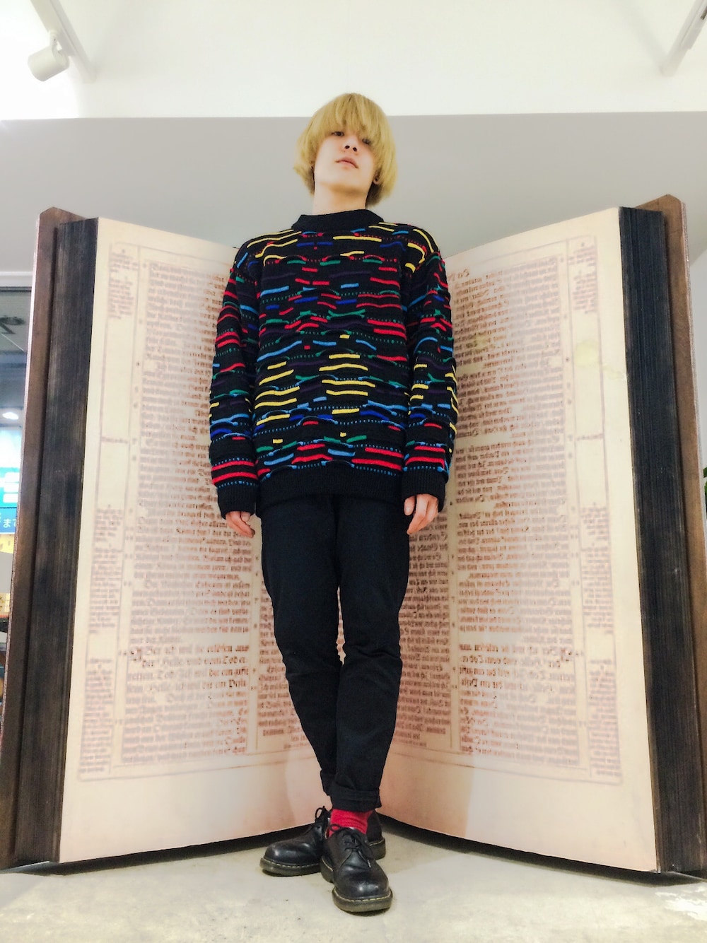今日は珍しくカラフルニット!! 凄まじくカラフル あまり着ないので 珍しいです。 今の髪色ならいけるかと クージーのニットをチョイス! 90年代のHIPHOPを代表する このニット とても肉厚なので あっつい!!! 仕事でこれは暑いww ではでは 皆様。 良い夢を。 グッドヴァイブレーション