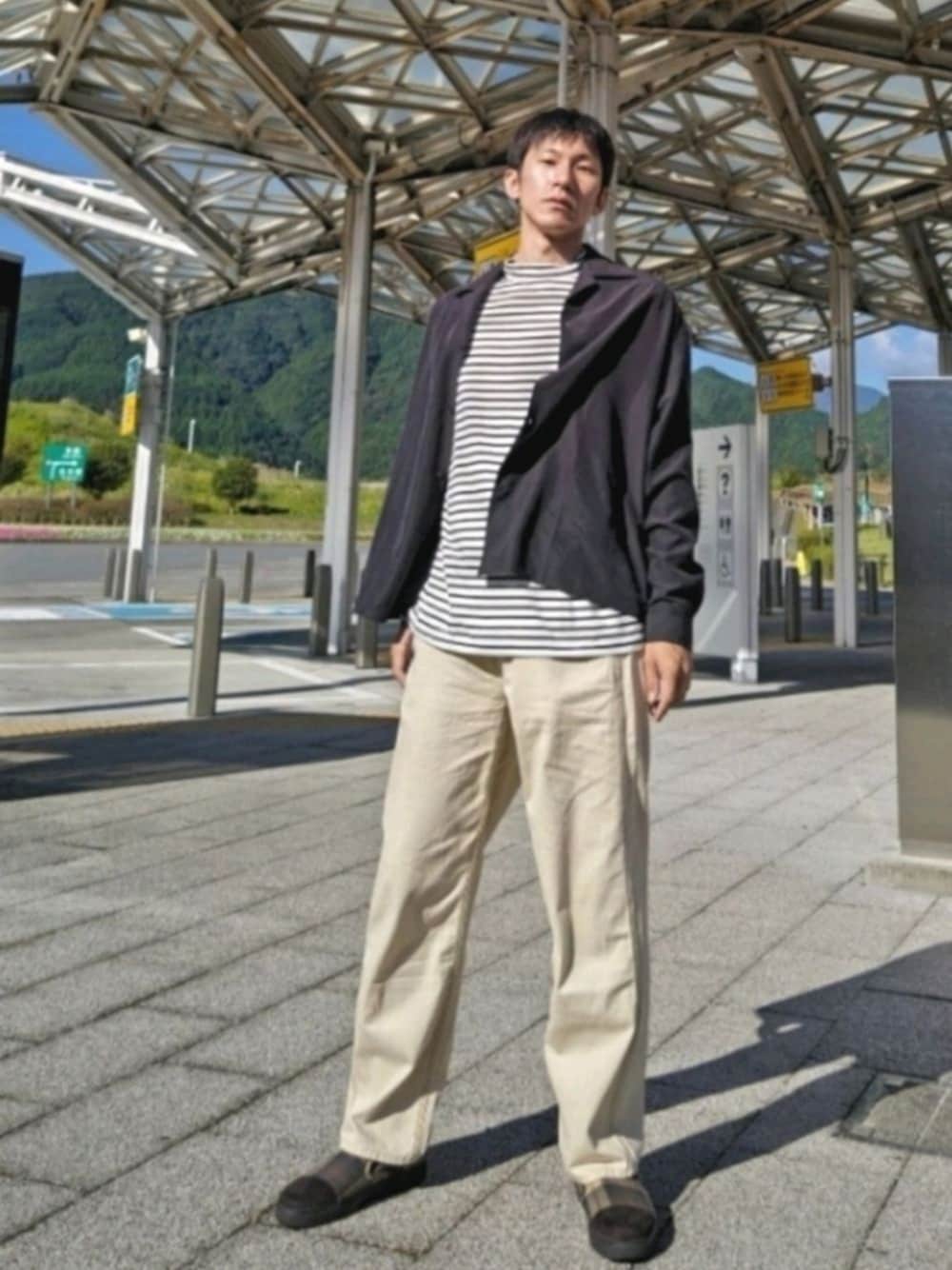 いつもご覧いただきありがとうございます! 若さ、若さーってなんだ?振り向かないこのとさー♪秋服、秋服ーってなんだ?、、、うーーん、羽織り?開催中のコンテストのお題の秋服に迷中。 因みに宇宙刑事ギャバンの歌を冒頭にもってきてますが、放送当時は生まれてません、や、歳とってないアピールとかじゃないですよ。 というわけで今日からバシバシ#だから秋服が好きに投稿していきますよー!一発目は黒のオープンカラーシャツの羽織、モックネックのボーダー、に落ち着いたベージュのワイドデニムで秋っぽさを出してみました。なんかコーデ写真で上半身にできたL形のシルエットが個人的に気になって仕方がありません。 とりあえず、オッサンですが振り向かずに若く生きたいと思います。