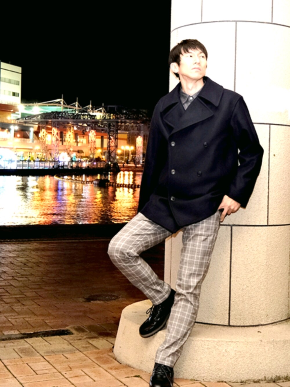 いつもご覧いただきありがとうございます! ダブルブレストのコートに身を包んだ、とある38歳のエレガントなアフターファイブ。冬のイルミネーションを颯爽とすり抜け向かったその先で・・・自撮りDQNっ(^o^)←ずこーーっ UNIQLO+J2021AWの発売から1ヶ月経たずして、まさかの期間限定大幅値下げヒャホーーィ(^o^)というわけで、瞬殺でポチッた念願のウールブレンドオーバーサイズピーコートのコーデです、この重厚感、本当たまらんっす。wearされてる方はご存知の方多数でしょうが、UNIQLOの値下げは週2回あって、金曜日は期間限定値下げ、火曜日は時間経った商品の永久値下げが毎週更新されます。もう最近、値下げにつられて買っちゃうから値下げしないで〜、って思いますわ。そんなわけで今日までピーコート、6千円値引きで2万でお釣り来ます(←100円だけな)。ちなみにファッション初心者の私、ピーコートって仕様、+Jで初めて知ったのですが、、、初めて聞いた時の第一印象が、響き的に志村けんさんが昔、コントやってたようなコートを想像してしまったっす。 そんなピーコートは海軍由来とのことで、海と撮りたいなと、車に服を積んでおいて、昨日の仕事帰りに撮ってきましたっ!この時期は車の中にカメラ積んでも壊れる心配ないのも良き♪こんなアフターファイブの楽しみ方してる中年、確実にマイノリティーですわな。。。いややや、平日の夜だとイルミネーションのそばも人少なくて、撮りやすいんですよね。とは言っても、人通りゼロではないので、最終的に妥協して羞恥プレイに走りますがねぃ(*‘ω‘ *) おっとっと、コーデの話を少々。前のニットのときと同じような組合せですが、ネイビーのウールやニットの合わせは、白系のガラパンの組合せに走ってしまいますね。 末筆で失礼いたします。前回のコーデを素敵なフォルダに加えていただき、momoさん、na___chi.0612さん、松波侑亮さん、ぱぱさん、いましさん、MR.Mさん、RA★SEさん、ソノヤマさん、たっくんさん、mangooseさん、いつも感謝しております!いいね、フォルダインいただいてる皆様、大変に励みになっておりありがとうございます!