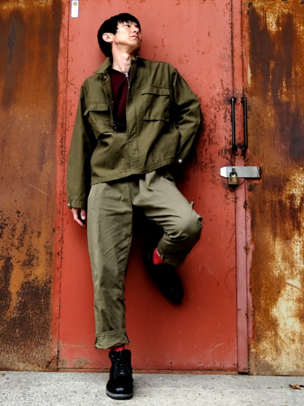 世〜界旅行に、行っきたっいな〜♪ ドラエモ「ウフフ (紅く錆び付いた)どこでもドア~♪」 の○太「そんなどこでもドアあるかーい、ニセモンっ!」 コーデを撮影する場所探してたら、いい感じの廃工場がありました、田舎も捨てたものではないです。さて、今年のトレンドカラーはアルティメットグレーと、イルミナティイエロー(←・・ちょっと違くない?)ということでしたが、WEARでお洒落感度の高い皆様は感じておられると思いますが、、、グリーン!めっちゃ流行りましたよねー!むしろ、特に冬物は難しい色だったろうに、がんがん緑がラインナップされ、早期にカラー欠けな人気だったと思われます。 そんなわけで、本日コーデは上下グリーン、.stの誕生日クーポンを使うに購入したRAGEBLUEの薄手のブルゾン(半額♪)と、手持ちのZARAのパンツが似たような色だったので、同系色で陸軍チックに着てみました。 しかしまぁ、限りなく女子受けが悪そうな、合コンレッドカードなコーデだな。。。(←しかも中身オッサンな)まぁ、女子受け間違いなし!コーデはWEARに5万と溢れておりますので、私はこの路線でブルーオーシャン(未開拓市場)狙いますわっ! 前回のコーデを素晴らしいフォルダに加えていただき、Ryoさん、ひろ★さん、たけるさん、mangooseさん、RA★SEさん、ソノヤマさん、たっくんさん、na___chi.0612さん、松波侑亮さん、ぱぱさん、いましさん、本当にありがたく感じております!いつも、いいね、フォルダインくださる皆様、感謝申し上げます!