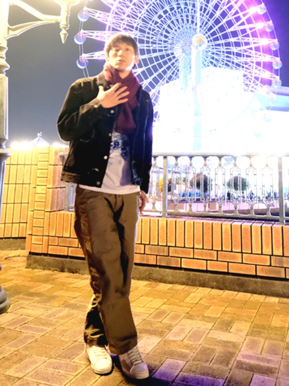いつもご覧いただきありがとうございます! この時期よろしくイルミネーション自撮りに突るも、最前線はカップル、ファミリーだらけで無理!ってことで離れて撮影。震える指先は、寒さのせいだけじゃない年の瀬(*‘ω‘ *) というわけで、夜景自撮りにつきピント外しまくり画質ボケボケですが、クリスマスムードを演出してみました♪(←被写体はオッサン・・)本当はイルミネーションの中で毅然とした態度で自撮りしたいとこですが、羞恥心が勝りまして、まだ修行が足りんな。。。ちなみに昨日もクリスマスっぽいところで自撮りを試みましたが、ツリーやリースとかって、めちゃ人の集まるところにあるから自撮りは本当にキツいわ。。。仲良しさんで、デカいツリーを背景に撮ってる方いましたが、羨ましいんだよね〜(^o^)こうして自撮りを思い、自撮りに迷い、自撮りに悩み、自撮りに喜ぶ38歳の年の瀬(*‘ω‘ *) マフラー、デニムジャケット、プリントTのシンプルコーデですが、各々の丈感とシルエットのバランス感が結構お気に入りです。 末筆で失礼します。前回のコーデを素敵なフォルダに加えていただき、*myuu*さん、ソノヤマさん、たっくんさん、いましさん、松波侑亮さん、mangooseさん、RA★SEさん、あみぃさん、ぱぱさん、na___chi.0612さん、ありがとうございます!