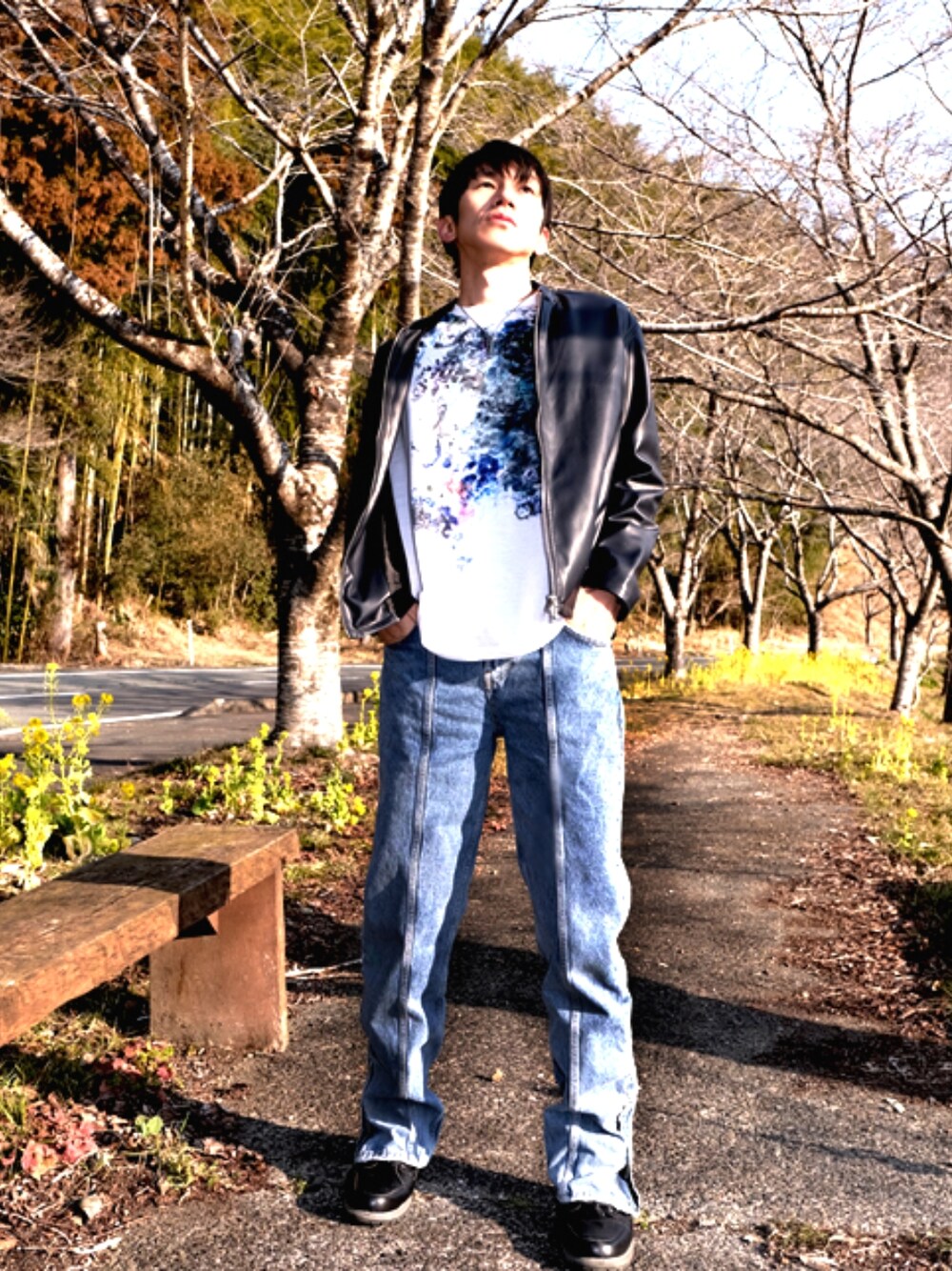 ドラエモのライダースジャケット「◆合皮ライダースブルゾン」を使ったコーディネート