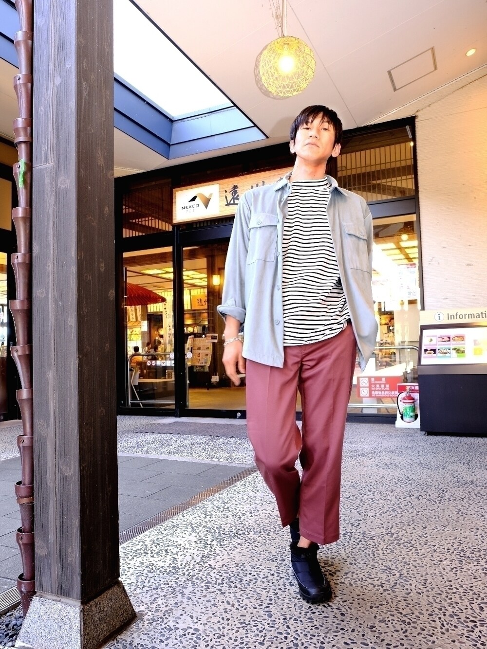 いつも、ご覧いただきありがとうございます! ドラエモ「サービスエリアの旅3部作中編〜、むにゃむにゃ」 天の声「うわ!めっちゃ眠そうな顔!居眠り運転すなー!」 チッカ、チッカ(ウインカーの音)・・ブロロロ・・・ 前回投稿の続き、なーのーに毎回衣装が違う謎のサービスエリアの旅。久々に少し遠めの高速ドライブなので、眠気に襲われながら立ち寄った遠州森町パーキングエリア。なかなか風情のある佇まいですね。早速のオススメ紹介ですが、ここのお茶屋さんのイートインにて。2枚目写真の抹茶と甘味のセットでおます。 天の声「や、ちょっと待て!お前、前回コロナ怖いから外食やめとく云々言ってたばっかじゃん・・・」 え?そうだっけ?(←痴呆)まー、運転に疲れた体に、ヌルい抹茶とほんのり冷たい抹茶おはぎが染みないわけがないしサイコーよマジで。串団子やパフェも売ってるけど、これ正解だわー。 さ、腹も満たされたことだし、先を急ぐぞ。浜松西インターまでの道中、次はどこのサービスエリアになるかなあ(←実は物理的にあと1個しかない) コックン・・・ コックン! あーー、お腹に食べ物いれたら余計眠いな。。 天の声「ったく、アホだな。自分にビンタでもあびせてみ」 ビシッ!ビシッ! ドラエモ「だめ・・なんかスネの方が痛くて気にならん・・」 天の声「・・・。なら歌でも歌って気分を上げろよ」 ドラエモ「そんなこと〜ない〜、私達〜、だから ねえ おやすみ〜アムロ〜♪・・・だめー、眠ー・・・」 天の声「アホ!こんな時にガンダム挿入歌のいまはおやすみ歌うな!もー、ヘッドバンキングでもしてなんとか覚醒しろよ!」 ドラエモ「うー・・、ヘッドバンキングは前方不注意だから前方を直視したまま体全体を揺さぶってみるよ・・・」 シャカシャカ!! ドラエモ「お!これならイケるゾ!!」 シャカシャカシャカシャカ!! 前の車の人「後ろの車運転してるヤツ、何か変なもんキマっててヤバそうだぞ!それとも新手のあおり運転か?!」 前回のコーデを素晴らしいフォルダに仲間入りさせていただき、m@さん、たっくんさん、ソノヤマさん、omari omariさん、松波侑亮さん、いましさん、RA★SEさん、yuuさん、ひろ★さん、ないきごるふさん、ケンさん、na___chi.0612さん、ルナラビさん、ありがとうございます!(見落としてしまった方おりましたら申し訳ありません。)いつも、いいね、フォルダインくださる皆様、誠にありがとうございます!
