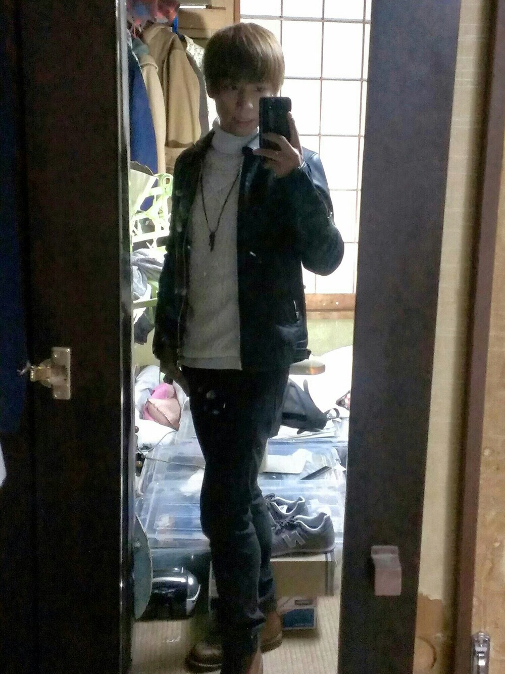 ライダースが着たかったので定番っぽくまとめたつもりです!ニットが白いからにゃーいんなーがちょっと見えちゃうけど気にしない方向で😅お見苦しい部屋ですみません(^_^;)