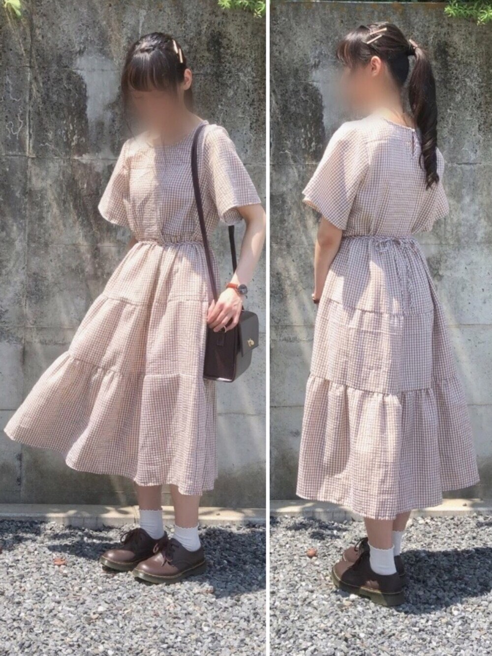 yurieのワンピース「ストラップSETチェックギャザーワンピース」を使ったコーディネート