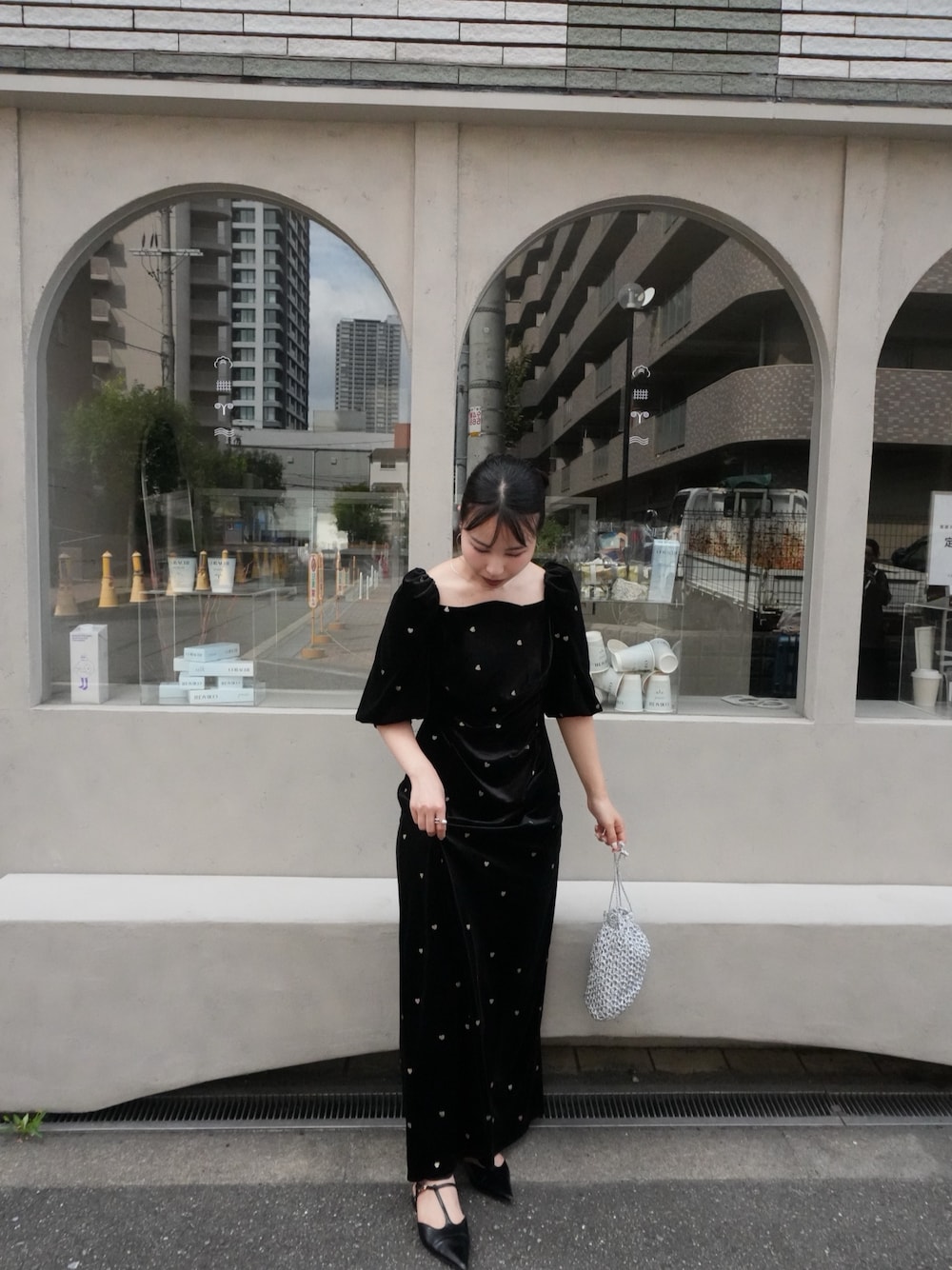 RIZUMU(et.UNiVER)のドレス「Sweetheart velour dress」を使ったコーディネート