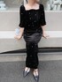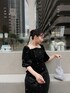 インスタで大好評なベロアドレス!! こんなに可愛いいのにシルエットもめちゃくちゃ綺麗なんです🥹🙏🏻 デコルテ周りもスッキリしていて 伸縮性もあるので窮屈感なく着用できました◎ Lサイズローヒール合わせは少し丈長く感じたけど大人っぽくて個人的には好みでした🫱🏻🫲🏽✨