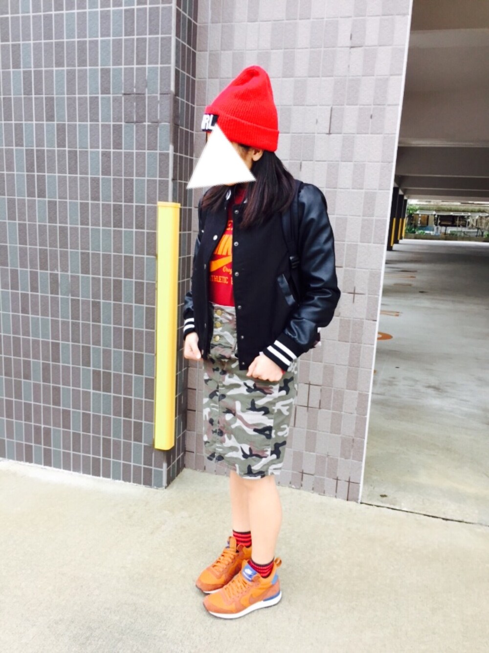 赤に見えるけど帽子もTシャツもワインレッドなのです そしてこのポーズは一体何…⁇ 相変わらず不自然~_~;