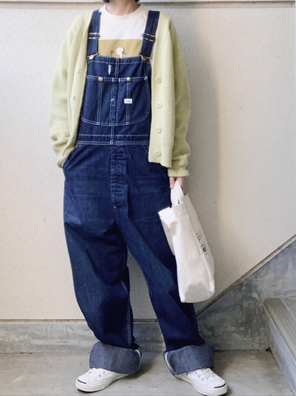 お目にかけていただき、ありがとうございます🙏🏻✨ 昨日のと一昨日のを足して、更に足したりアレしたようなコーデになりました🌝 Leeのオーバーオールの色、すごく黄色と合うと思います🙆🏻♂️ そして、「パステル映える春①」 このカーディガンの黄色はパステルです(言い切ってすみません🌝 いつも恐縮です🙇🏻♂️